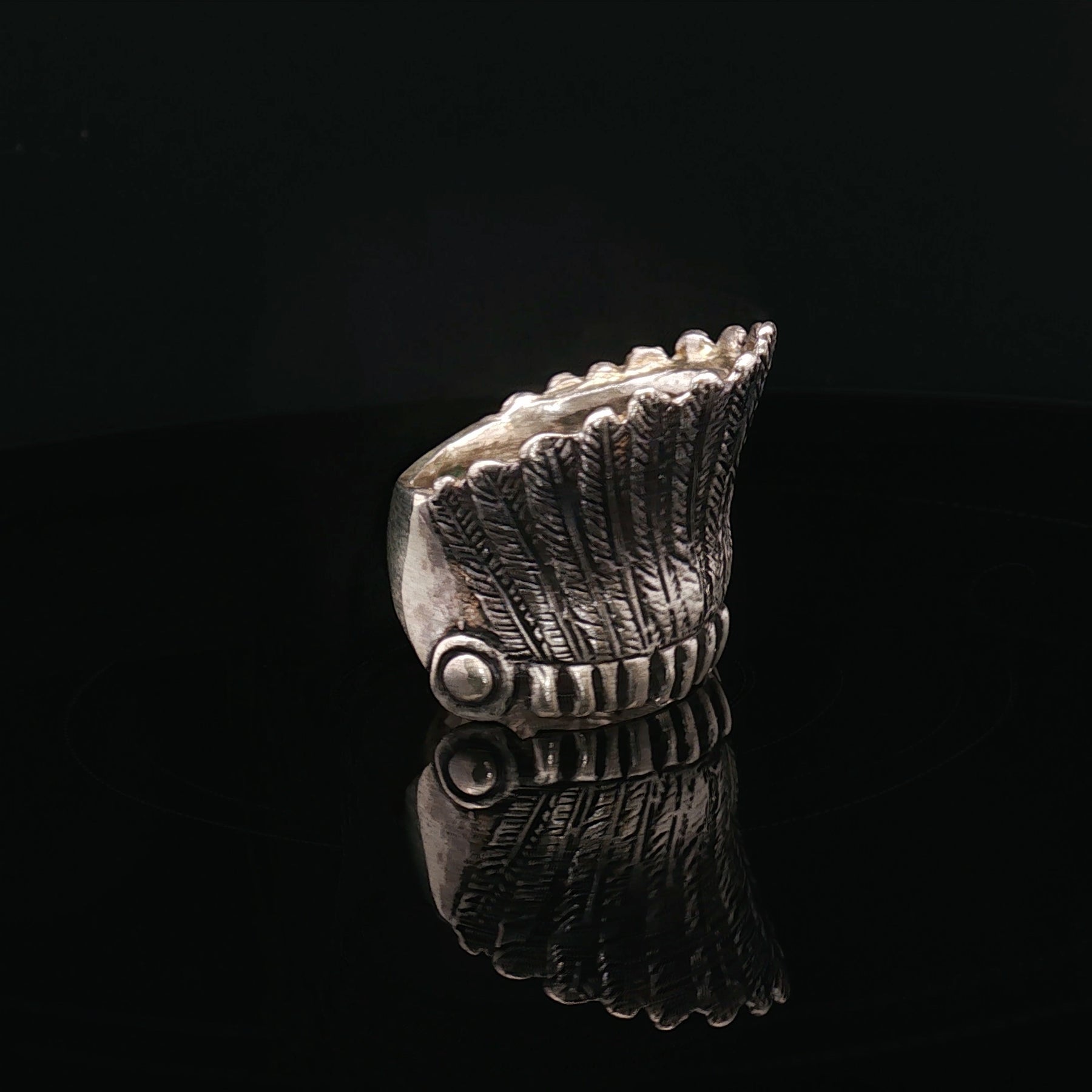Native American Feather Crown Limited Edition Sculptural Silver Ring