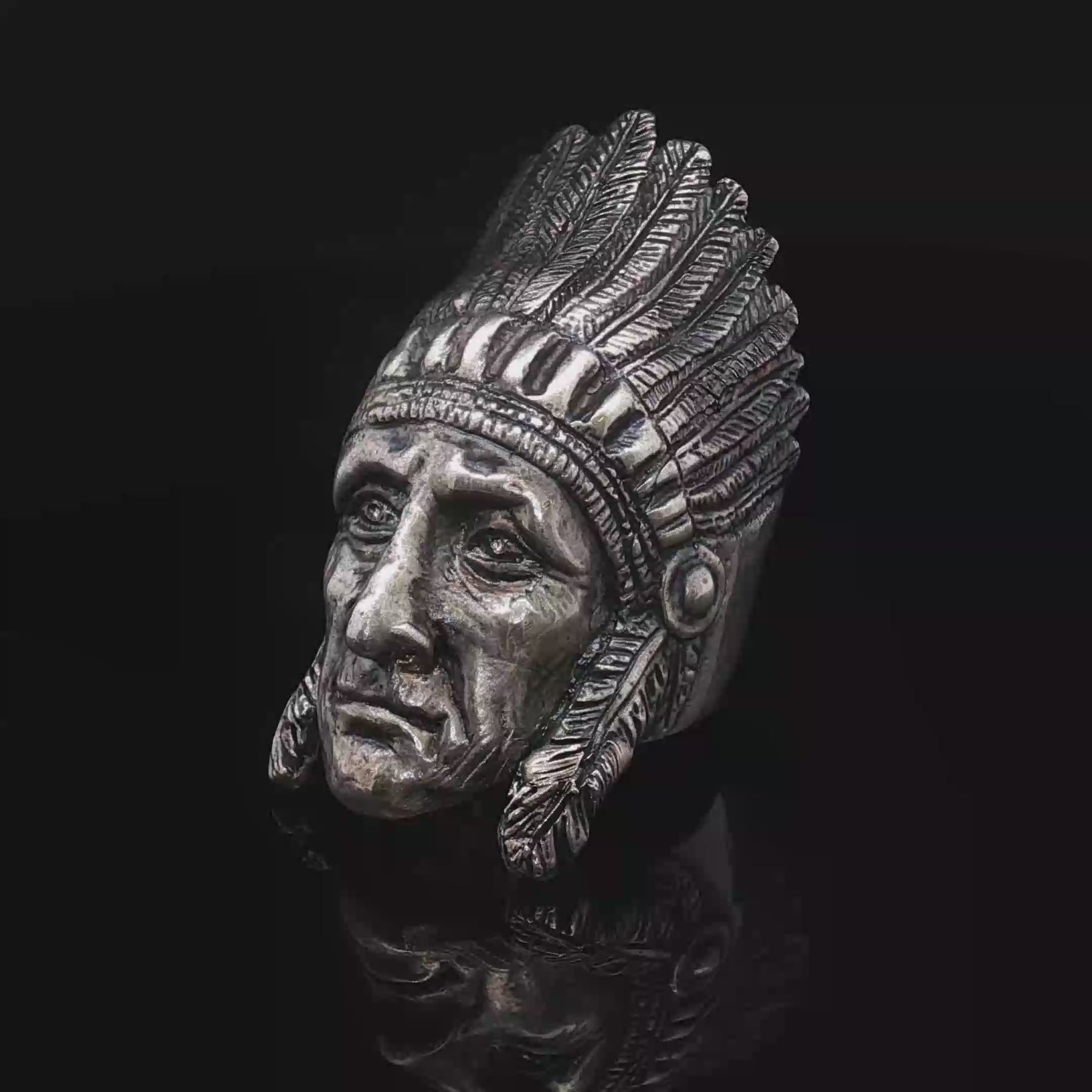 Native American / Indigenous Chief – Sculptural Silver Ring
