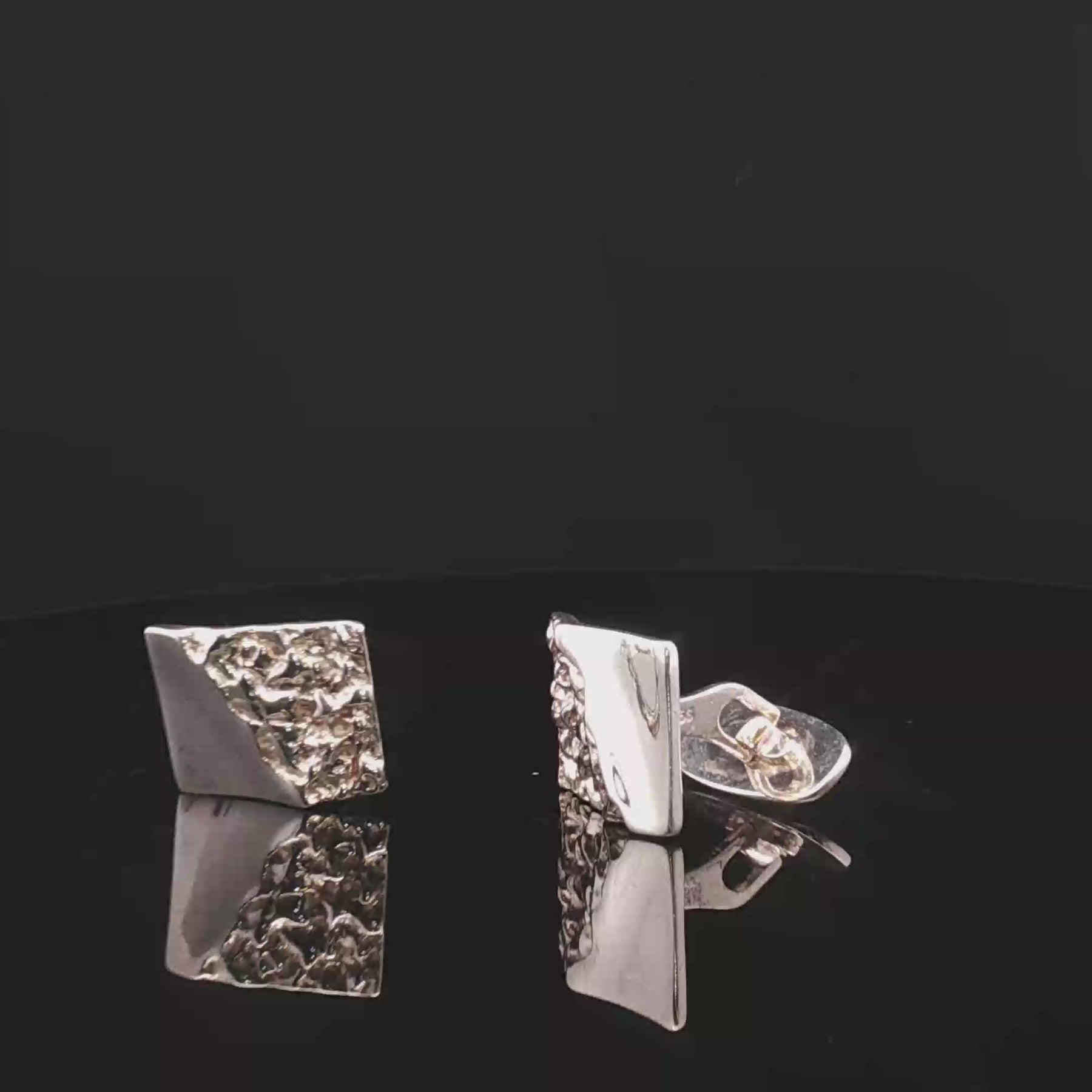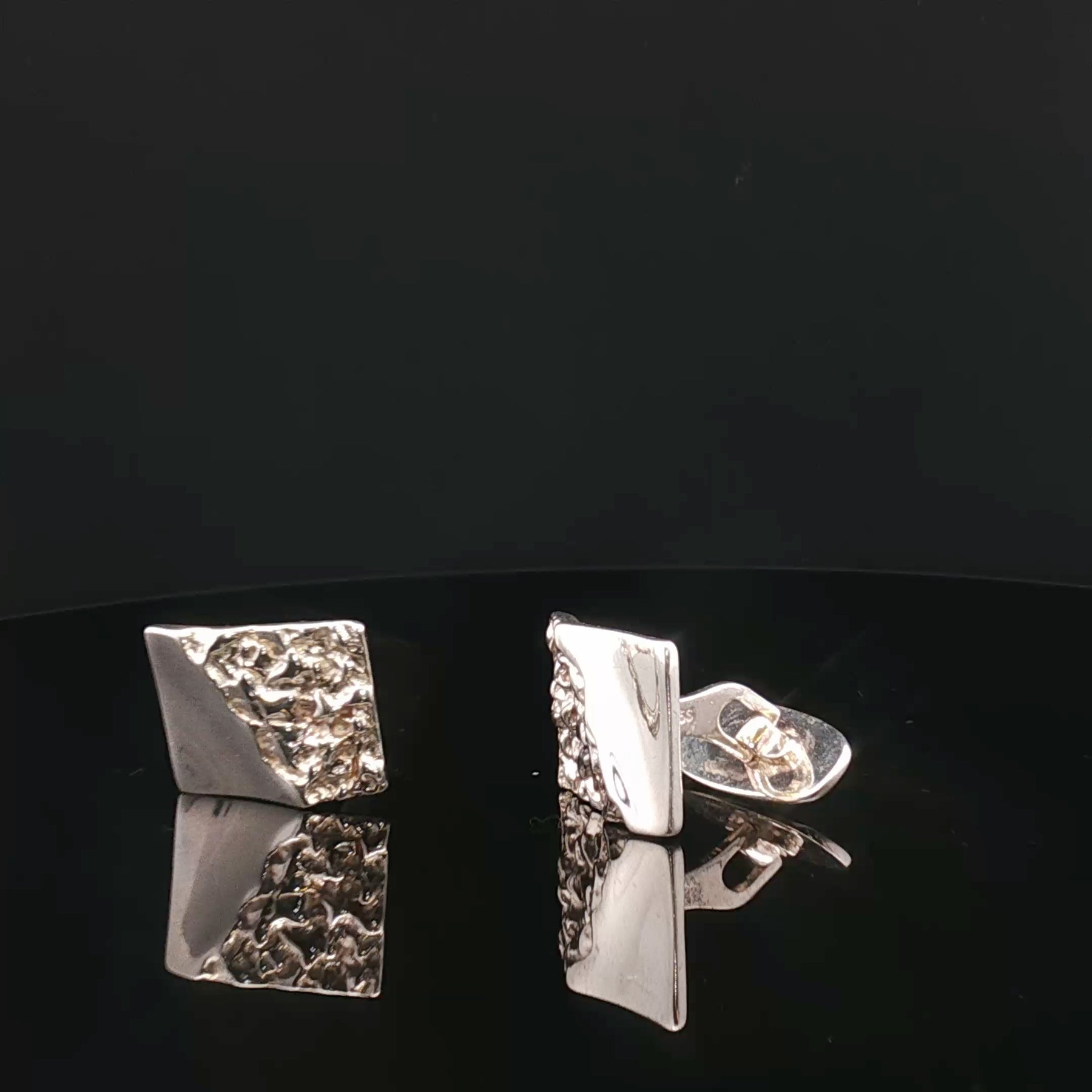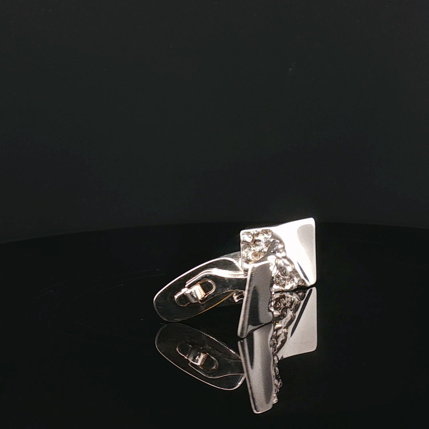 Nordic Contrast cufflinks are made from solid 925 sterling silver, featuring a bold square design that balances polished precision with raw sculptural texture. One side is mirror-smooth, while the other reveals an organic, textured surface — a signature expression of contemporary Nordic design inspired by nature and architecture.