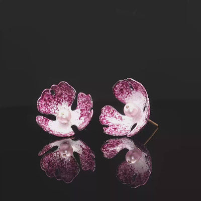 Bloom of Isfahan – Minakari Flower Earrings with Pearl