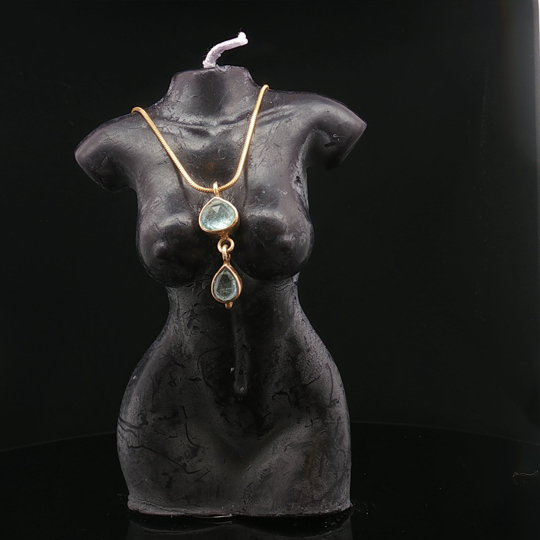 Aqua Duet is a rare Italian-made pendant crafted with two natural aquamarine gemstones — each set in a frame of gold vermeil over 925 sterling silver.