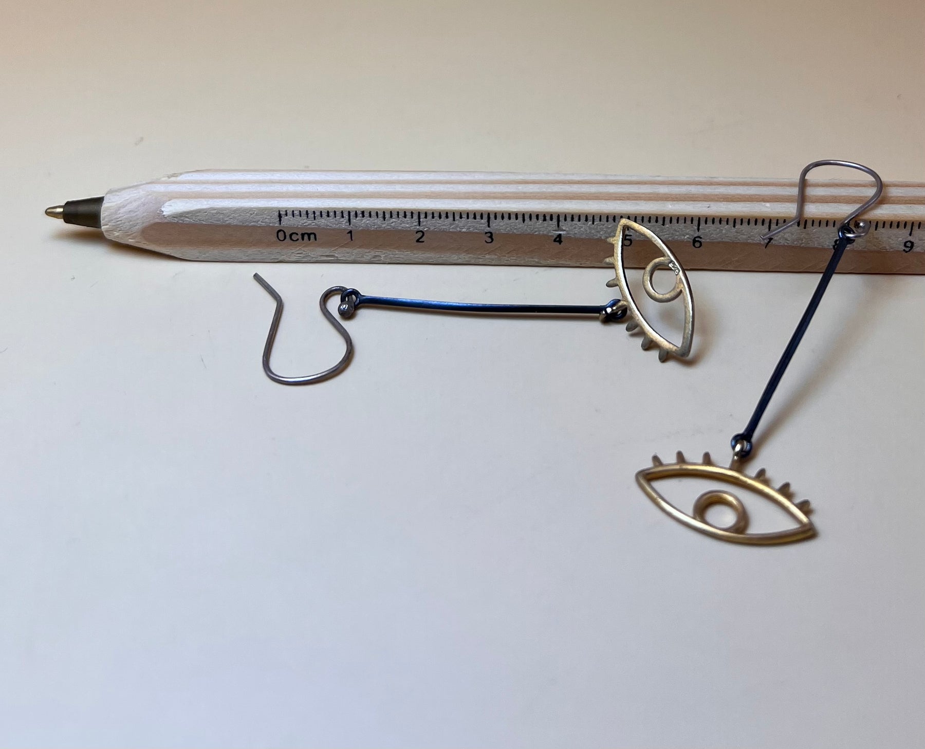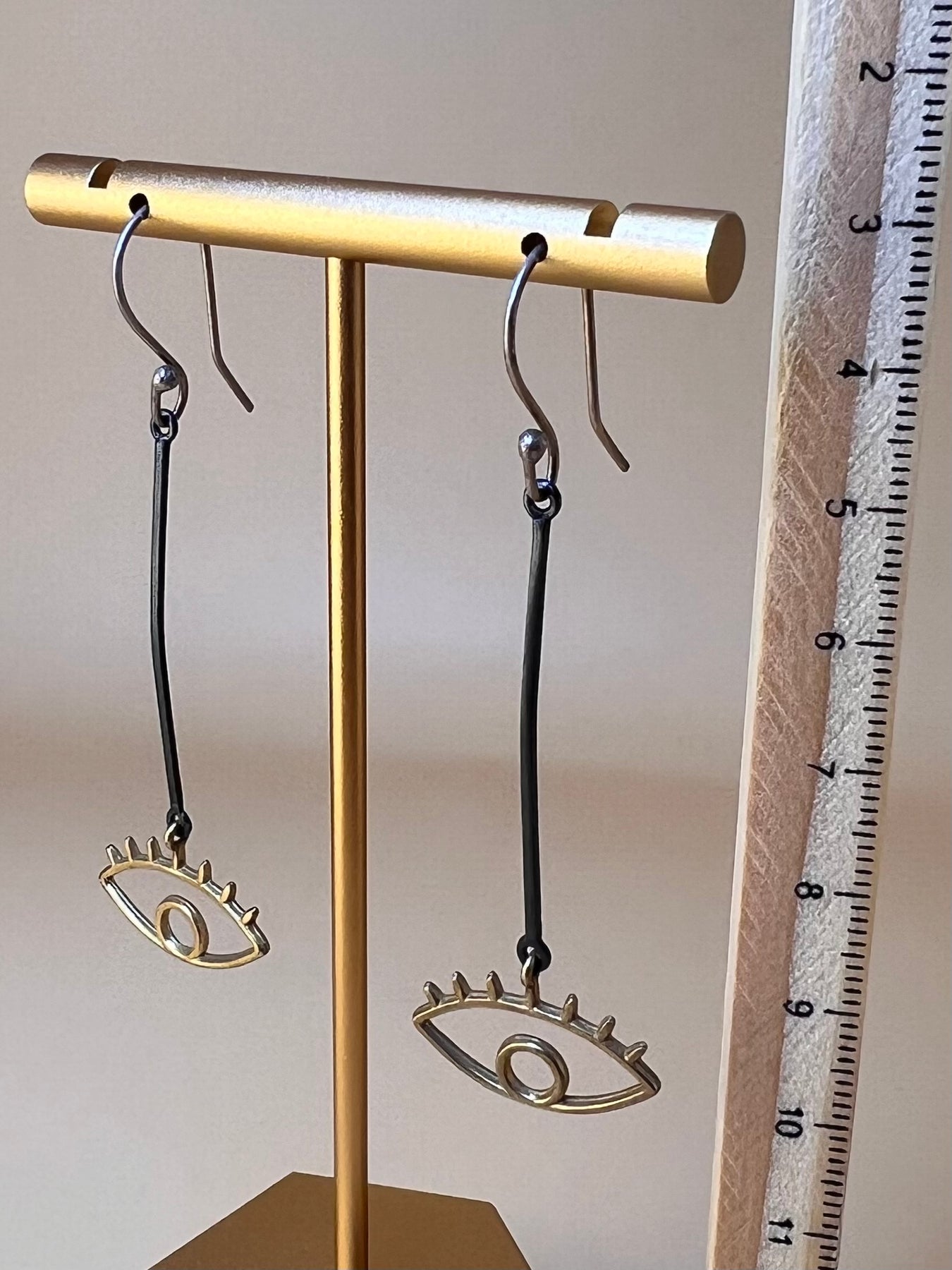 eye earrings, handmade in Greece, oxidized silver jewelry, gold plated silver earrings, symbolic jewelry, one of a kind earrings, artisan earrings, Greek eye jewelry, minimalist jewelry, maralkunst curated, protection jewelry, Athena inspired