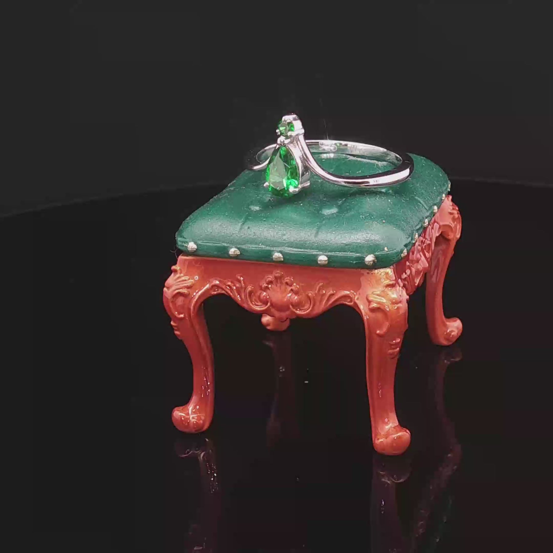 Pear-Cut Green Crystal Ring – Silver Minimal Design | Custom Gemstone & Gold Options