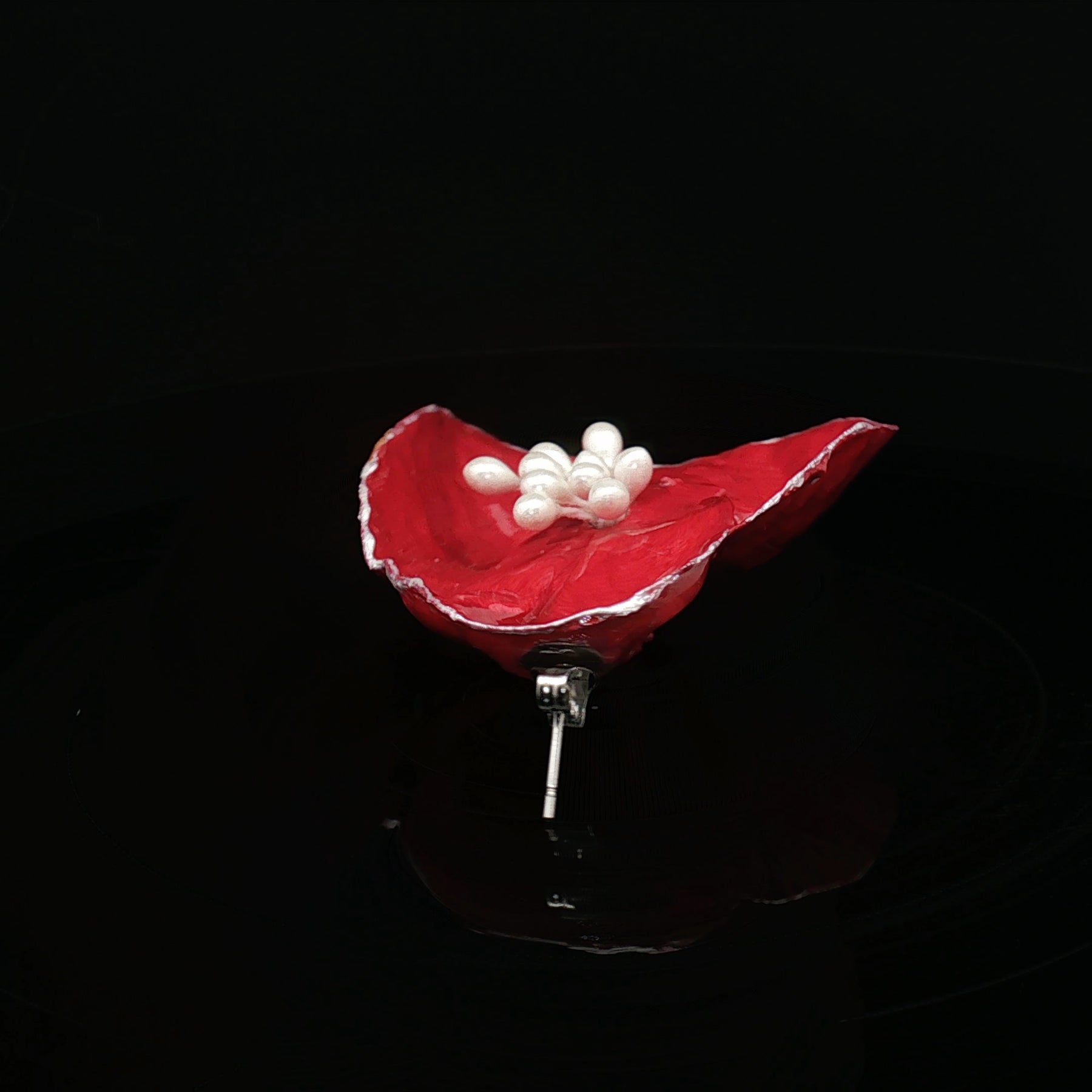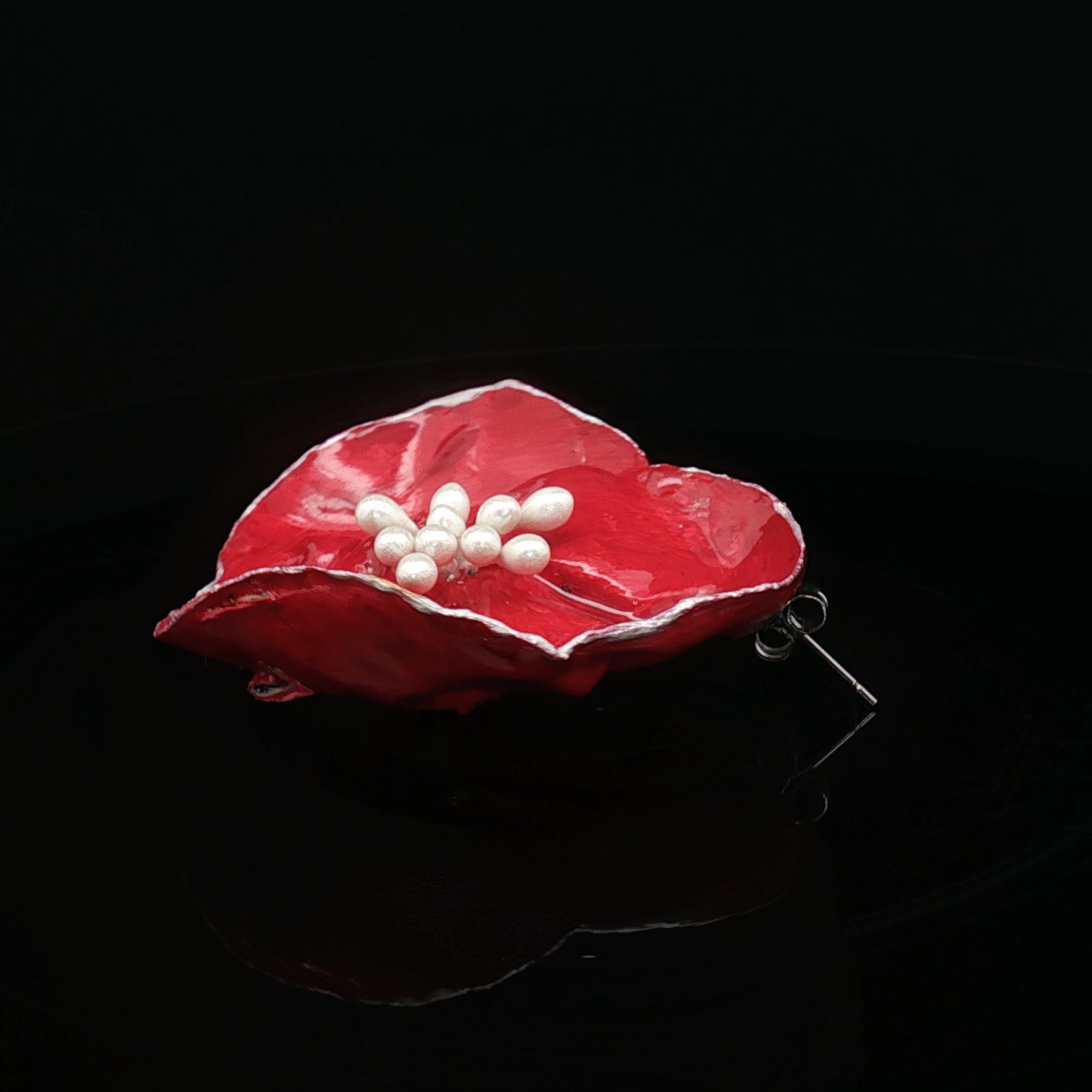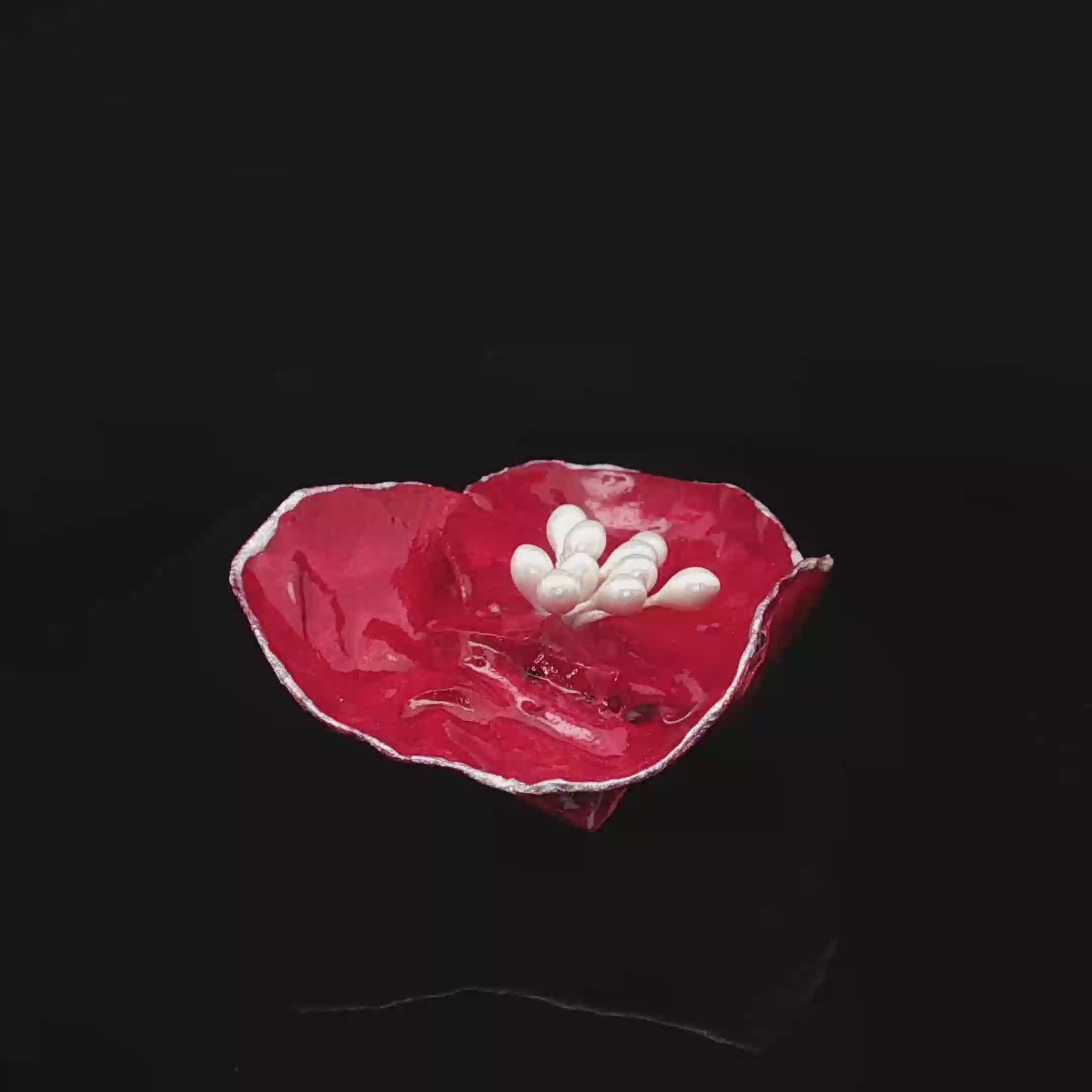 Each petal is shaped and painted by hand in bold crimson hues, symbolizing passion, vitality, and inner strength.