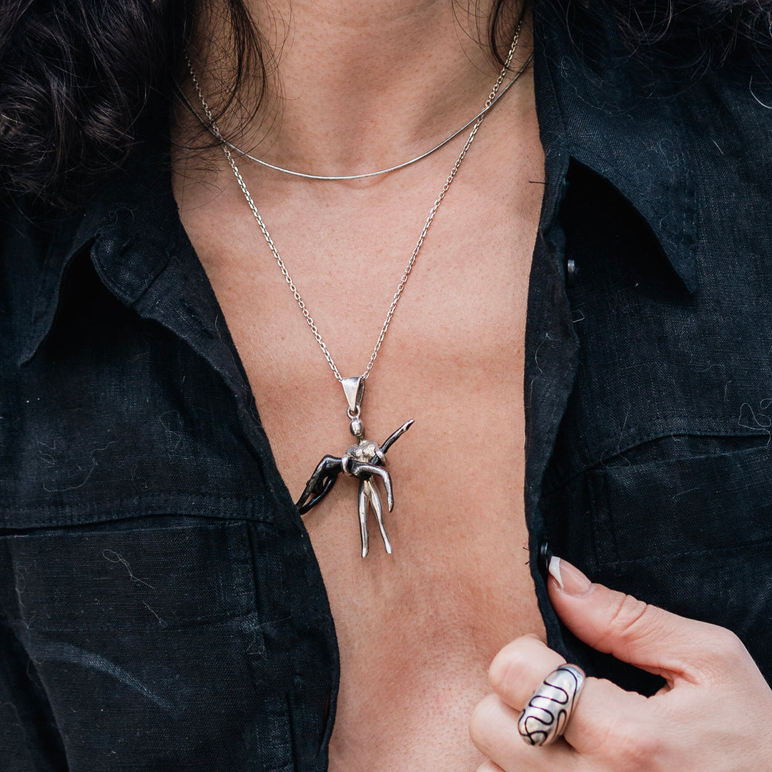 Mexican designer handcrafted Dancers 925 silver premium pendant necklace