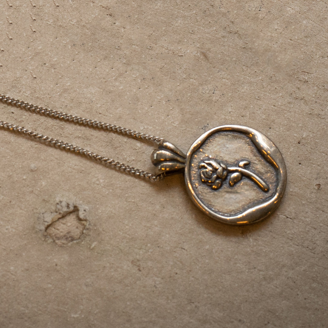 Maralkunst premium timeless Rose engraved charm sterling 925 silver necklace
