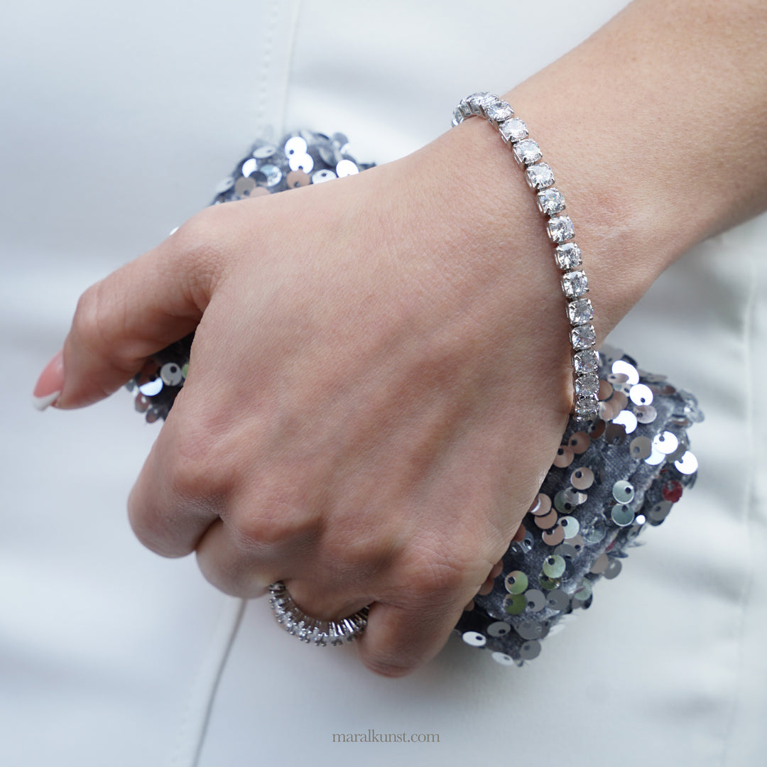 Parisian CZ tennis Crystal 925 Silver handmade Bracelet ( Maral limited edition premium)